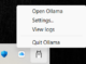 Neben der Kommandozeile und dem GUI ist Ollama nach der Installation auch im System-Tray verfügbar (Taskleiste unten rechts in Windows).
